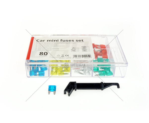 Kvalitní pouzdro Mini pojistek na ochranu elektrických instalací před poškozením. Typ pojistky: Mini Obsah soupravy: 10x5A, 10x7.5A, 20x10A, 10x15A, 10x20A, 10x25A, 10x30A, kleště Počet kusů v balení: 80 ks