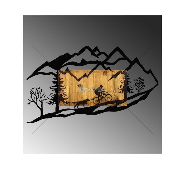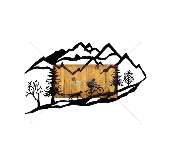 Dekorativní dřevěný nástěnný doplněk - jízda na kole v přírodě