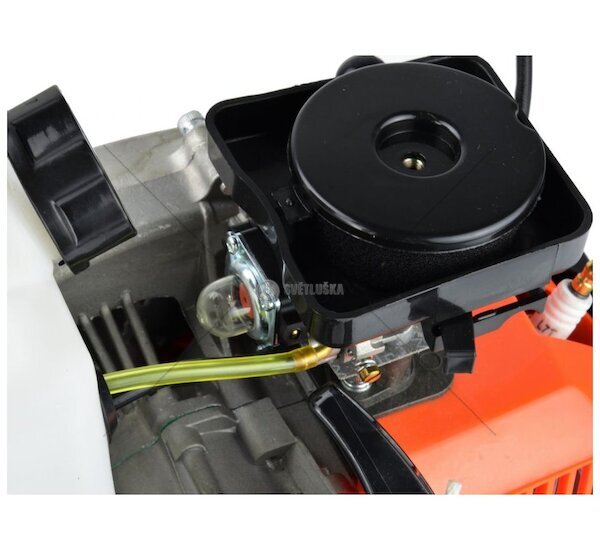 Motor s krytem palivové nádrže, karburátoru a cívky. Hladký a bezproblémový chod zajištěn.