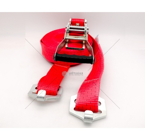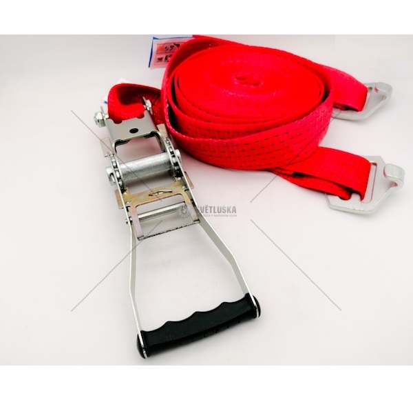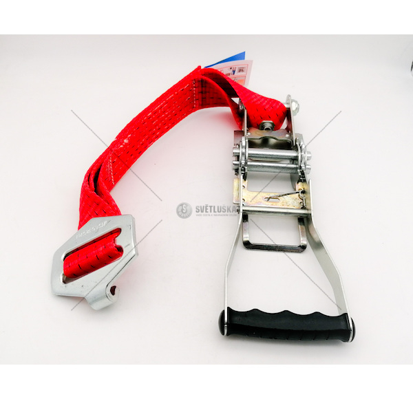 Upínací pás je vybaven dvojčinnou ERGO ráčnou. Ta umožňuje použítí až dvojnásobku upínací síly proti standartním pásům. Skvělá pevnost pásu 5000 daN je doplněna robusní ráčnou o síle 500 daN. Šířka pásu je 50mm a je zakončen háky.