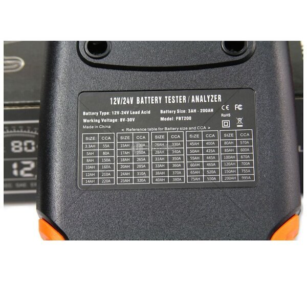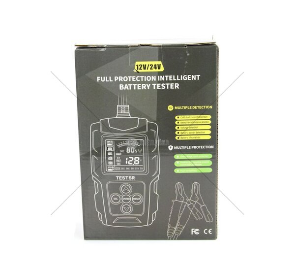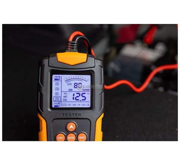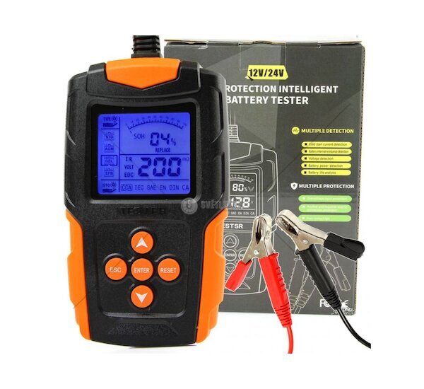 Tester autobaterií 12 / 24 V pro kontrolu stavu autobaterií 3 - 200 Ah. Umožňuje měřit napětí akumulátoru, nabíjecí proudy systému auta, vnitřní odpor baterií, startovací proudy, kapacitu baterií a zbývající životnost.